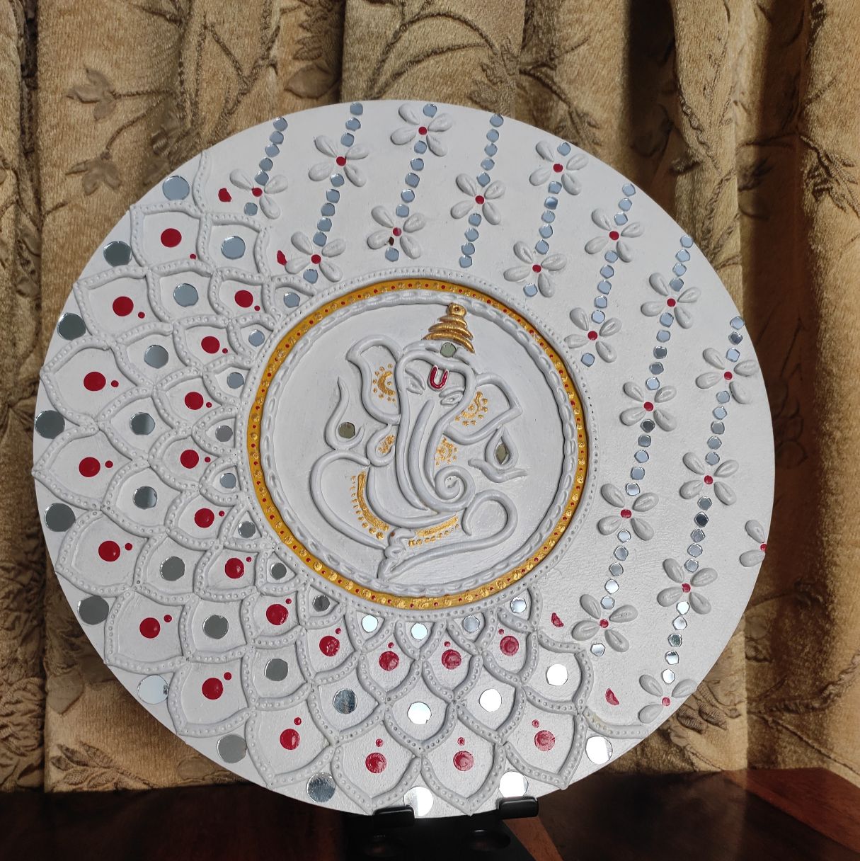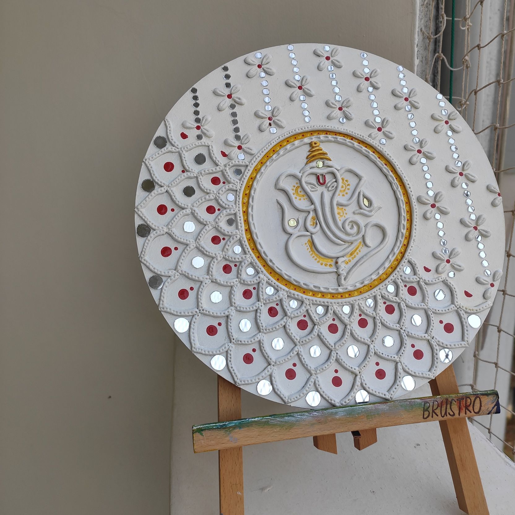 Perfect as a spiritual focal point or decorative statement piece, this Ganesha Lippan Art enhances any space with divine charm and artistic beauty.
