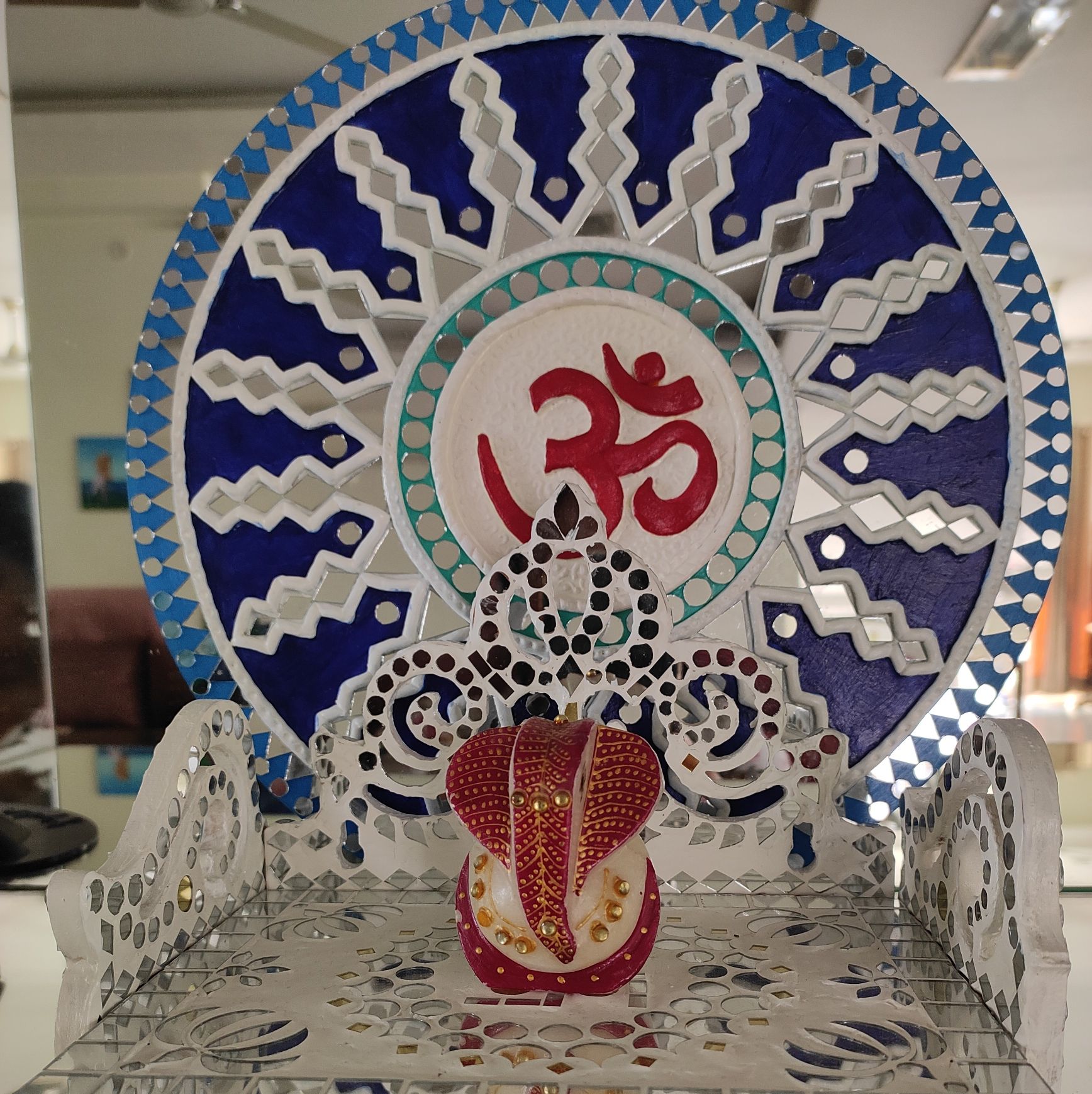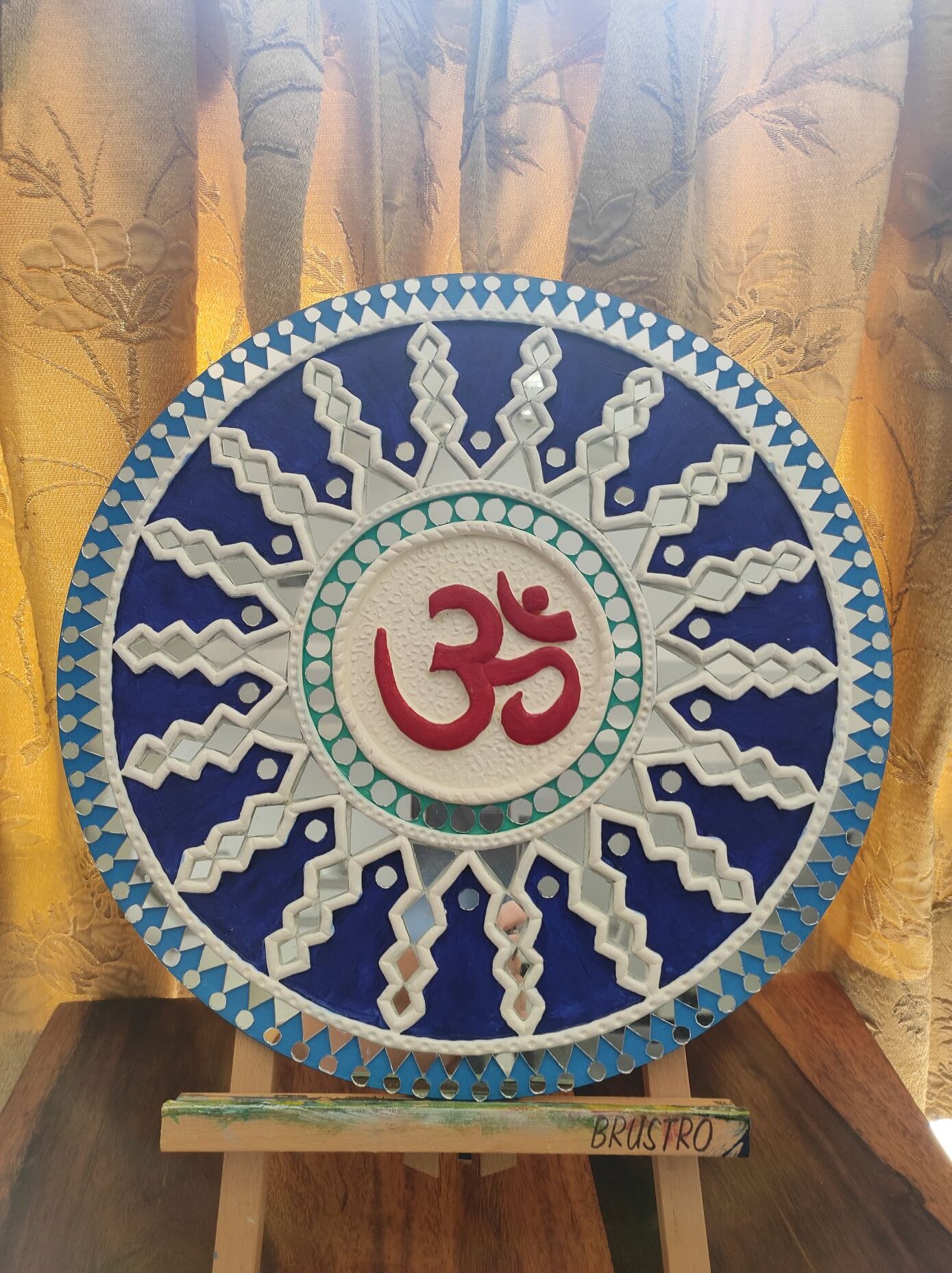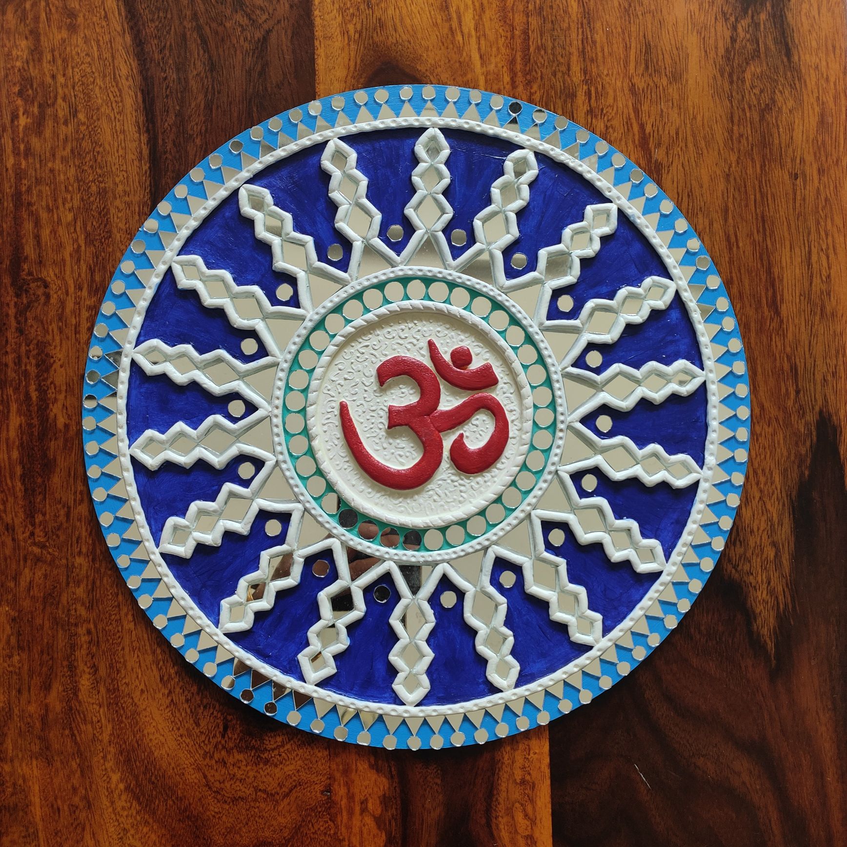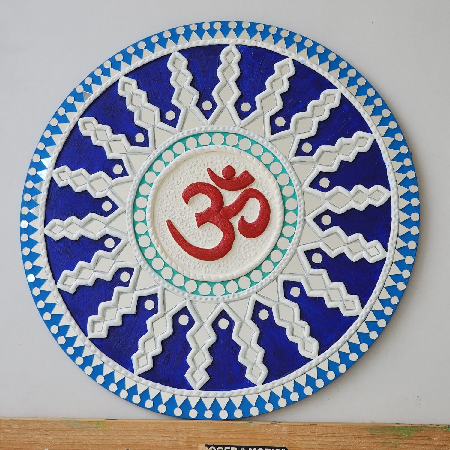 Bring divine energy and traditional craftsmanship into your home with this handcrafted Om Lippan Art wall decor. Designed in a striking blue and white mandala pattern, the artwork features a vibrant red Om symbol at the center, representing peace, harmony, and spiritual strength.