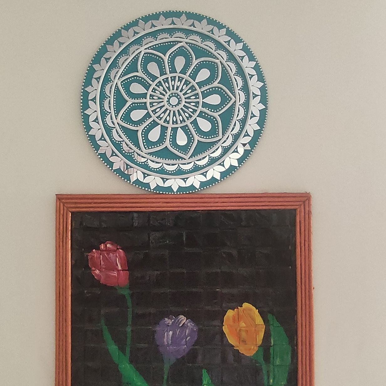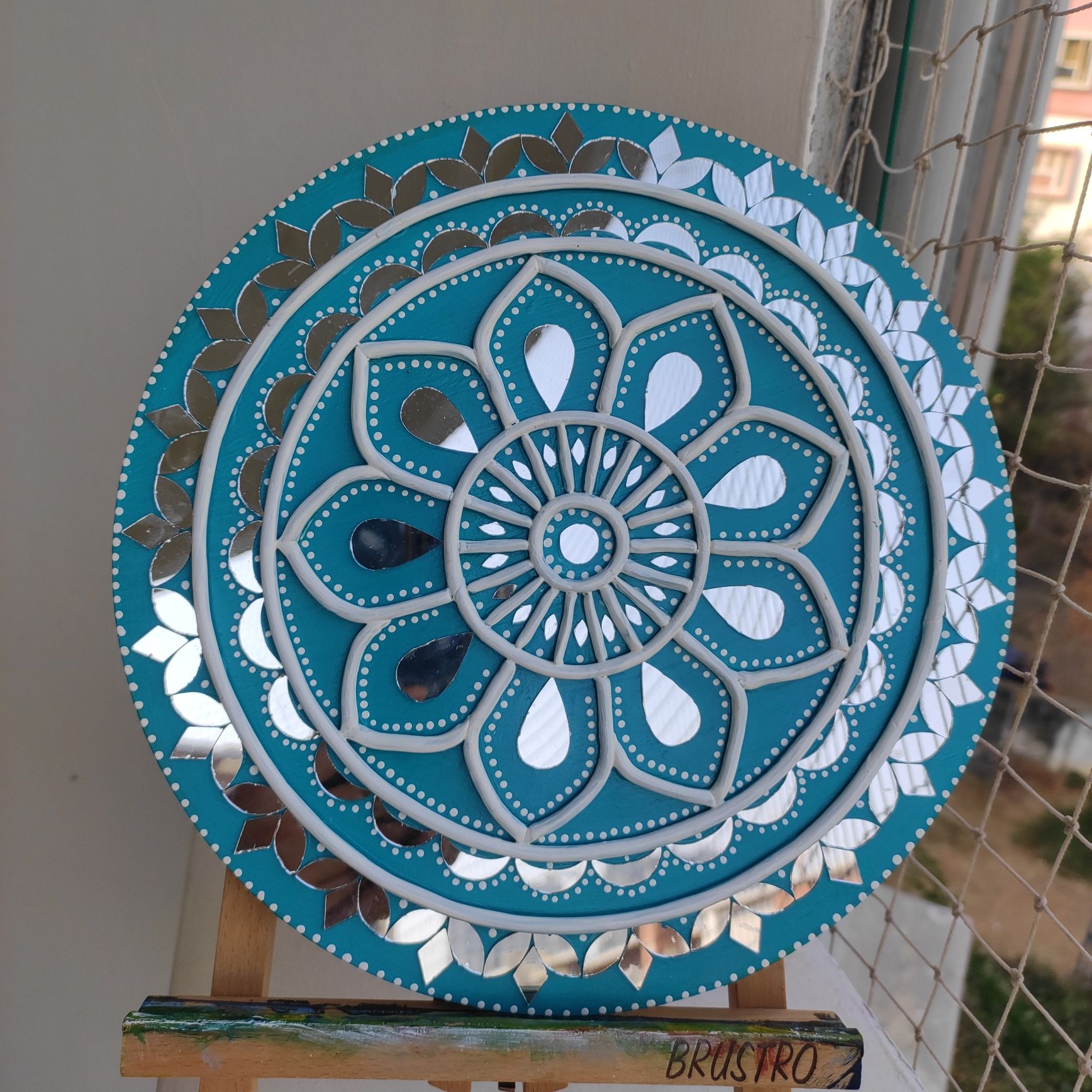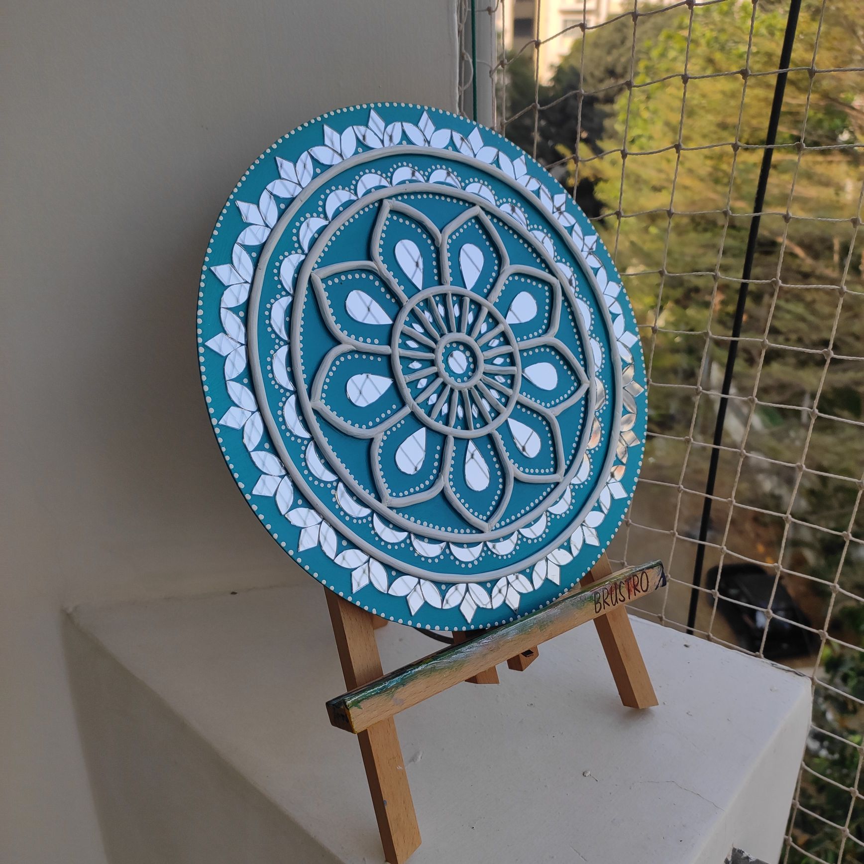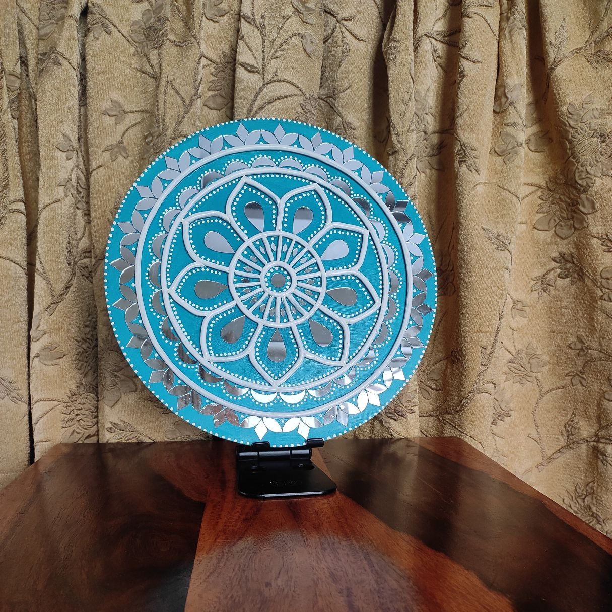 Add a refreshing touch of elegance to your home with this handcrafted Lippan Art mandala in soothing teal and white tones. The circular design features layered floral patterns with raised clay detailing, creating depth and symmetry that instantly draws attention.