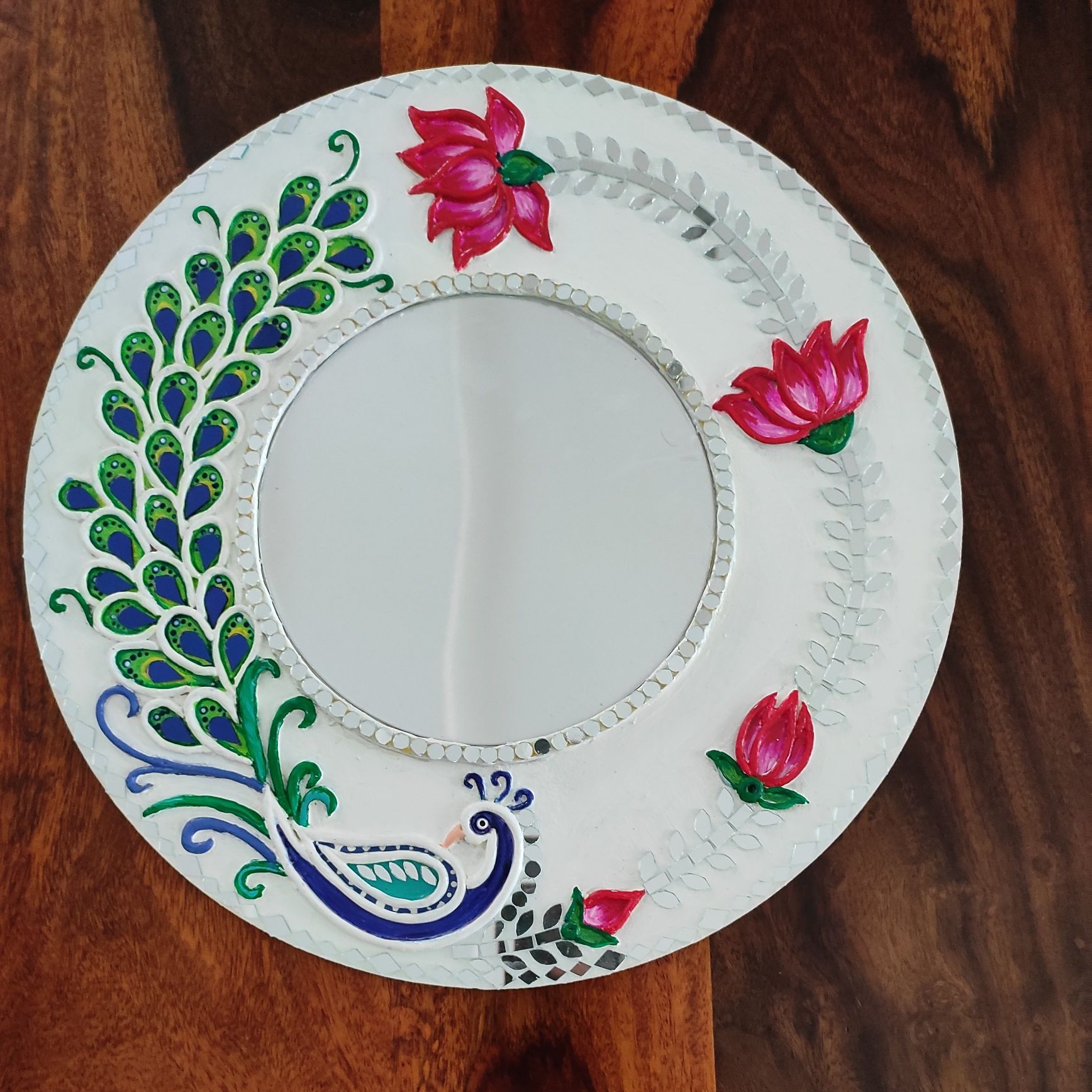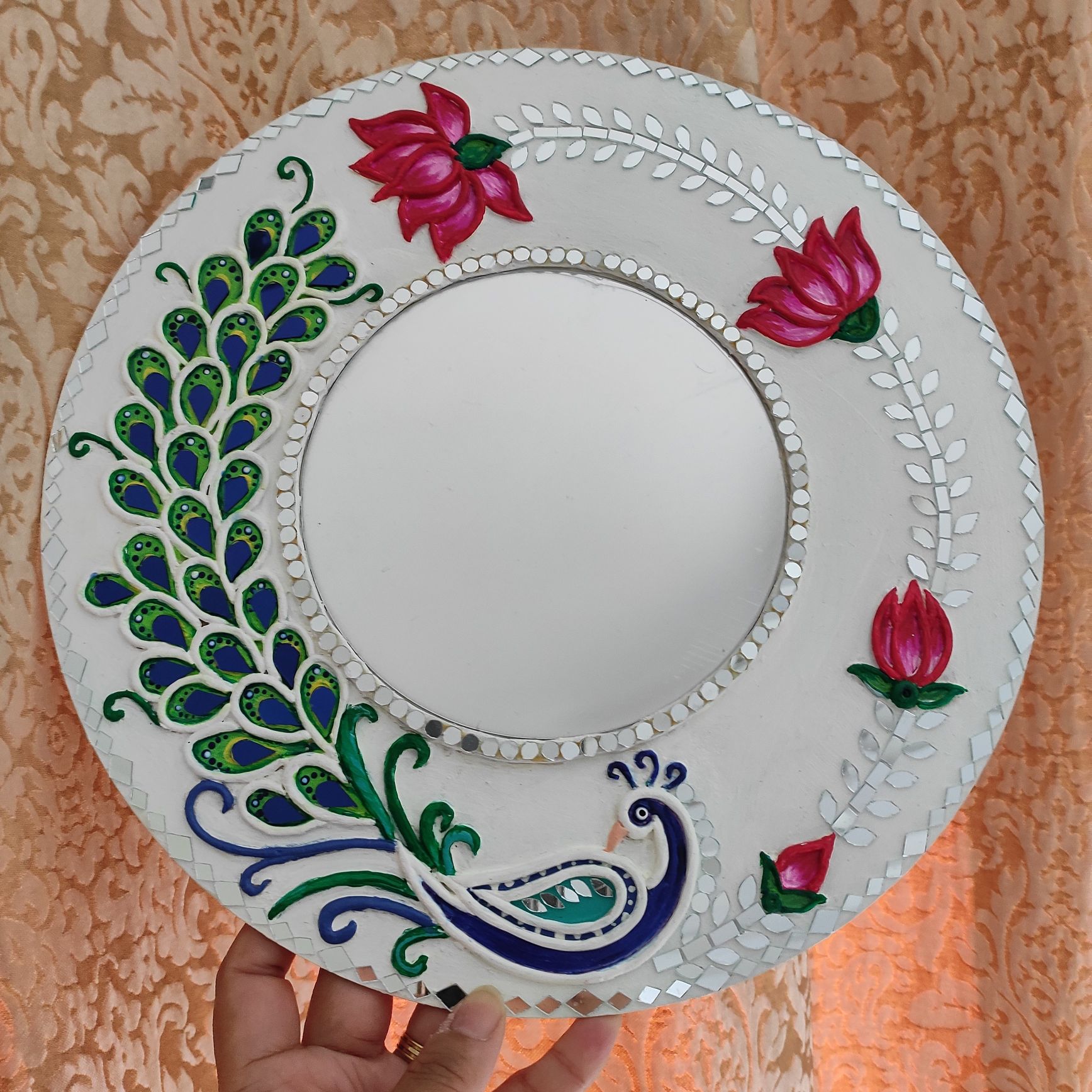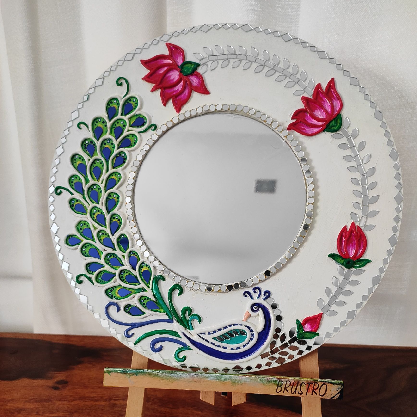 Be the first to review “Round Lippan Art Mirror with Peacock & Lotus Design | Handmade Mud Mirror Art (12 inch)”