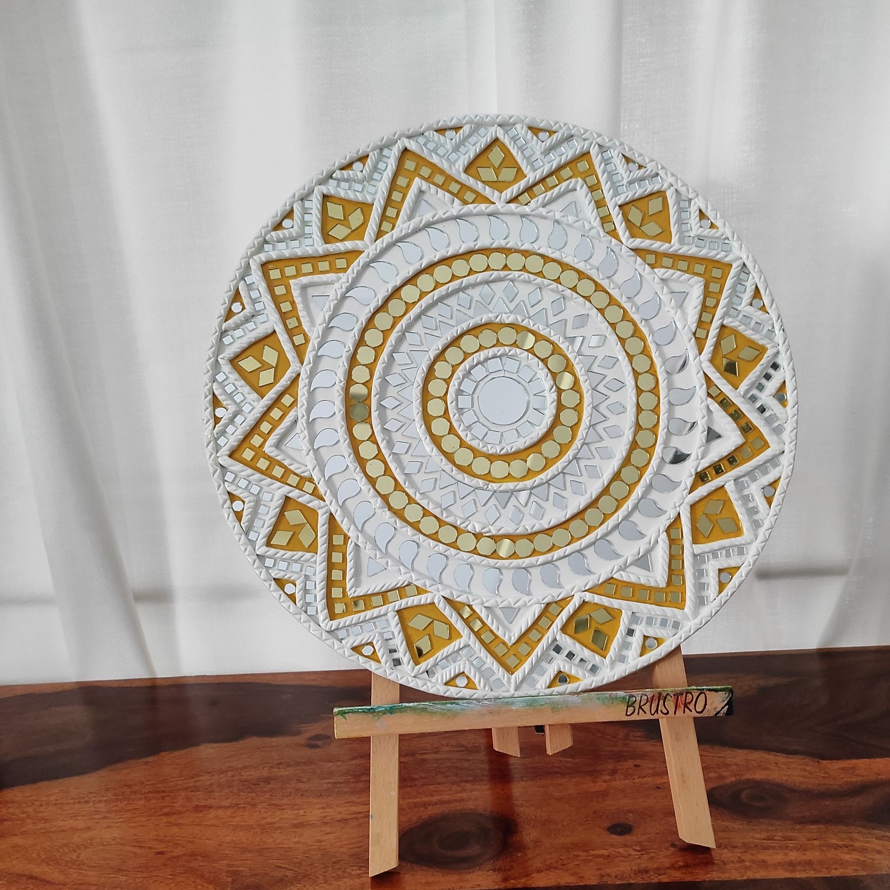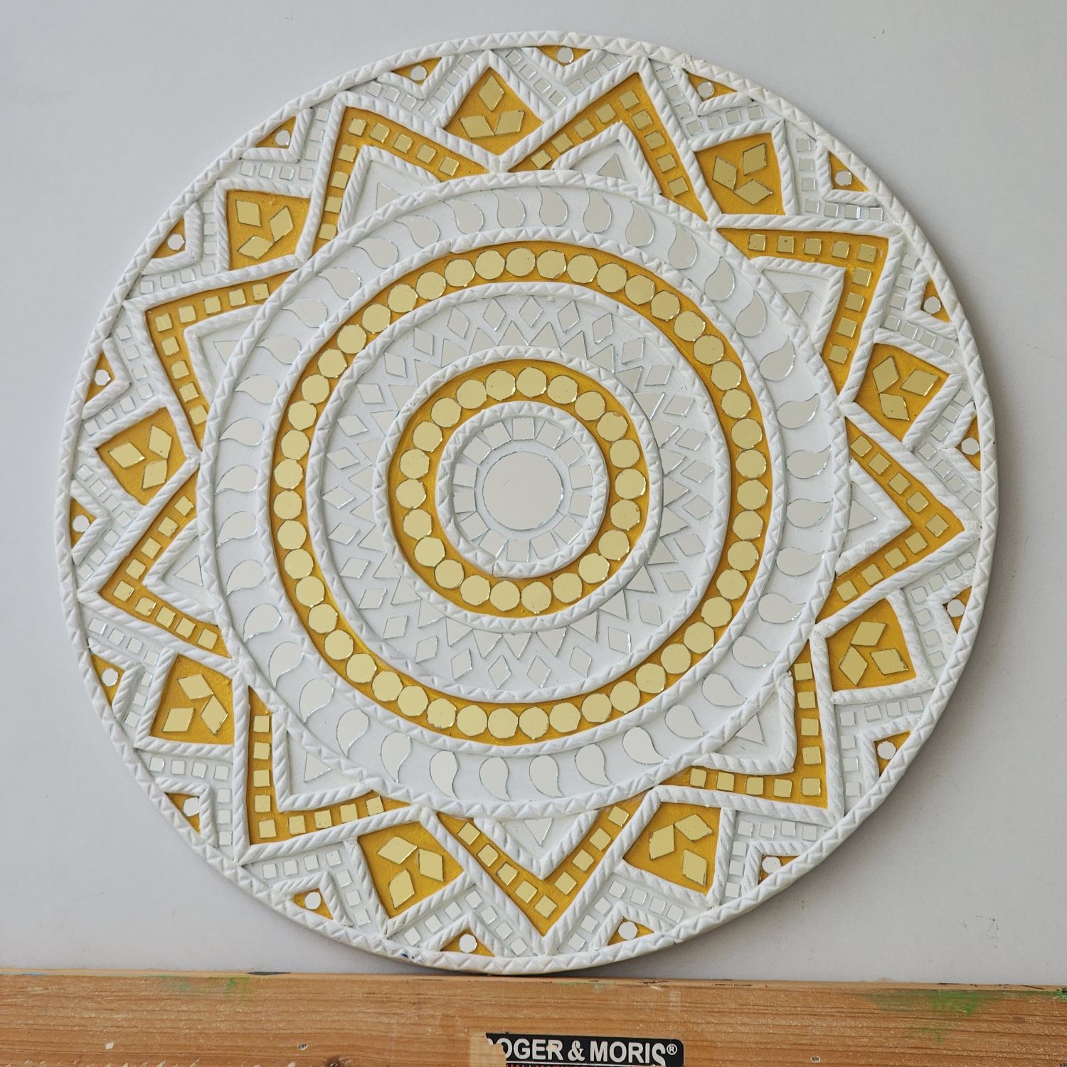 Elevate your interiors with this handcrafted mandala Lippan Art wall panel, designed in a soothing white and gold color palette that reflects purity, balance, and timeless luxury.